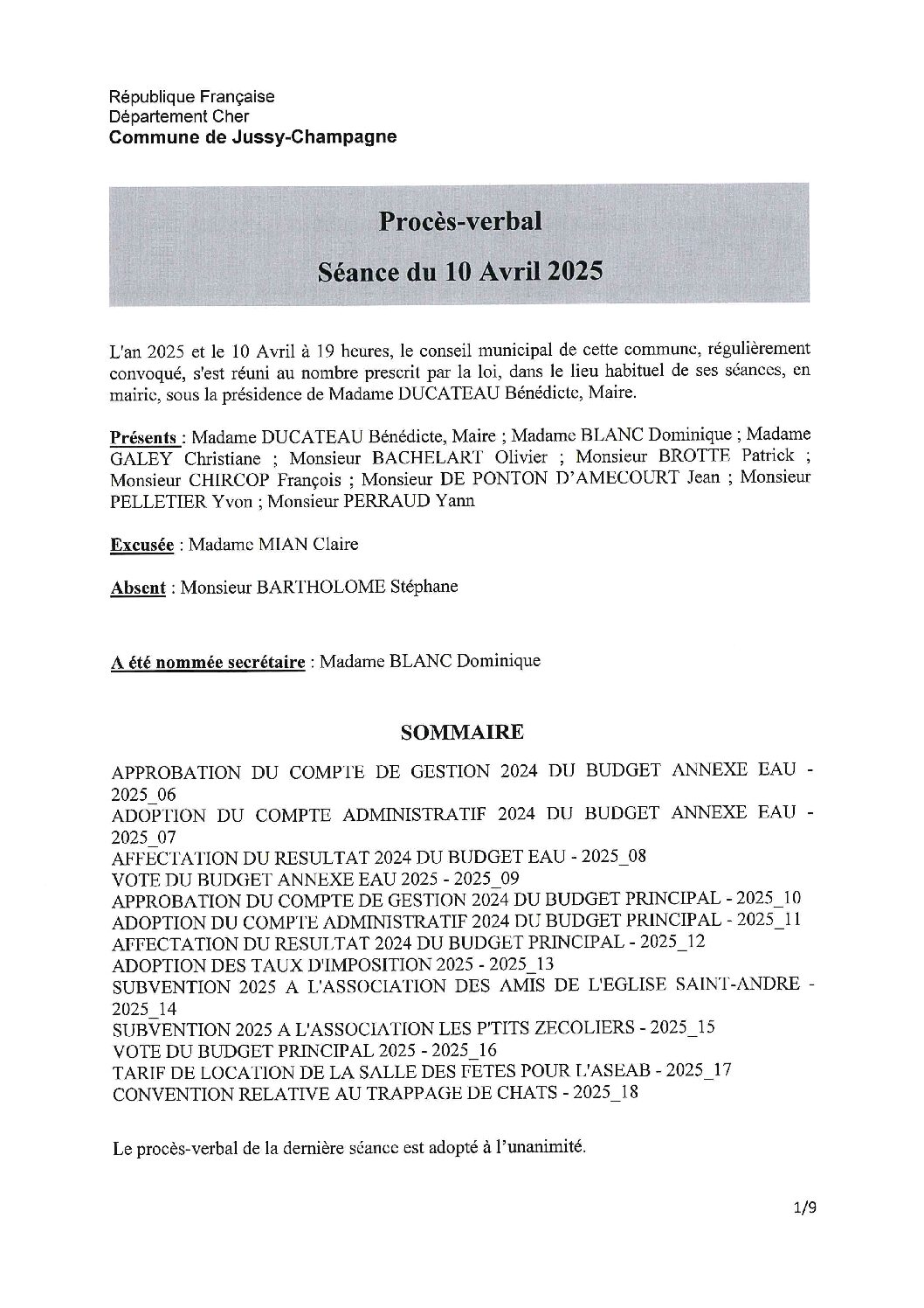 Procès-verbal du 10 avril 2025 Nov 3, 2025 Salon artistique par Lidwine Friconneau | Nov 3, 2025 | actualités mairie | 0 Commentaires Enquête publique SCoT par Lidwine Friconneau | Oct 24, 2025 | actualités mairie | 0 Commentaires « Entrées précédentes