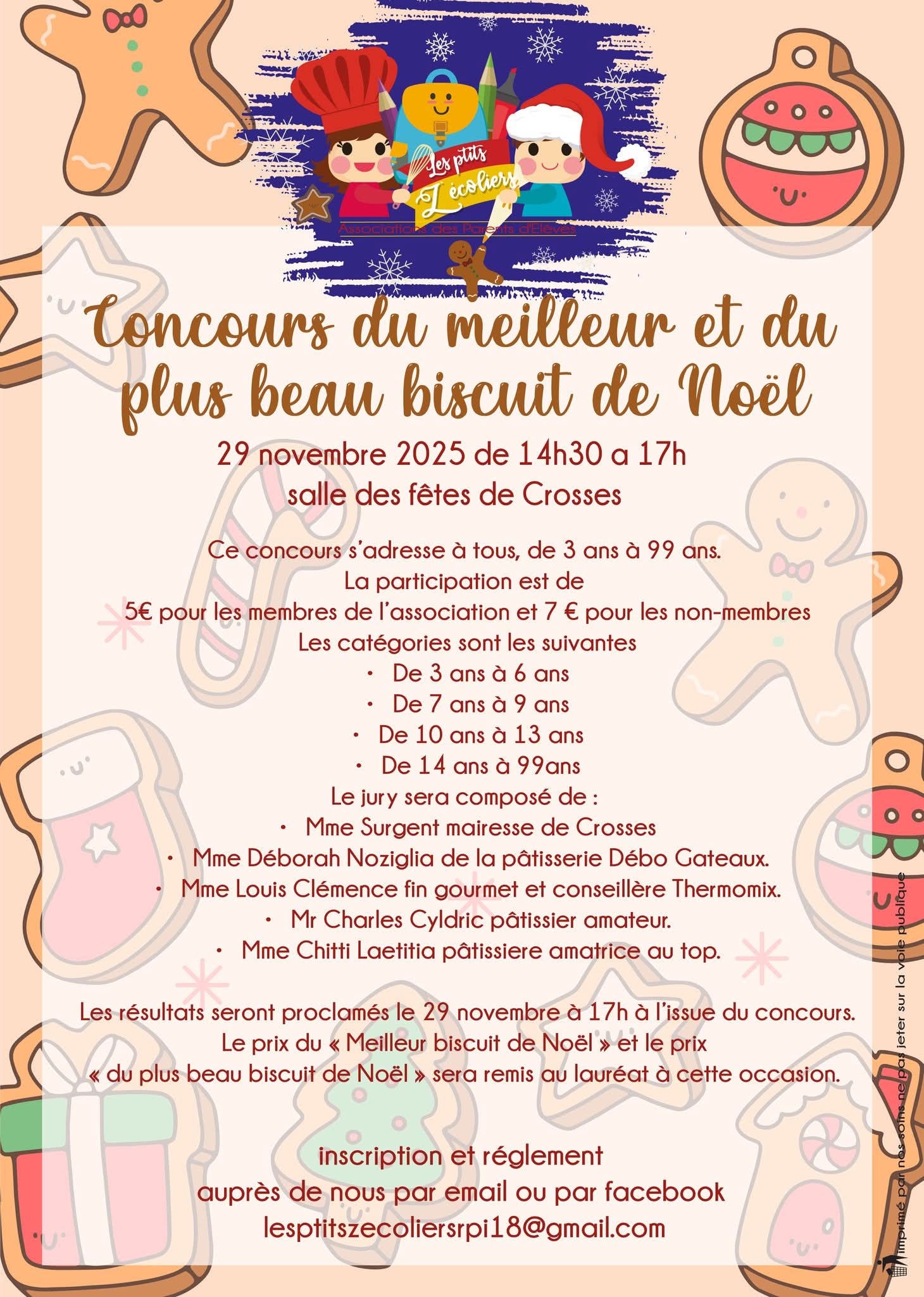 Concours du biscuit de Noël Nov 12, 2025 29 novembre 2025 salle des fêtes de Crosses Salon artistique par Lidwine Friconneau | Nov 3, 2025 | actualités mairie | 0 Commentaires Enquête publique SCoT par Lidwine Friconneau | Oct 24, 2025 | actualités mairie | 0 Commentaires « Entrées précédentes