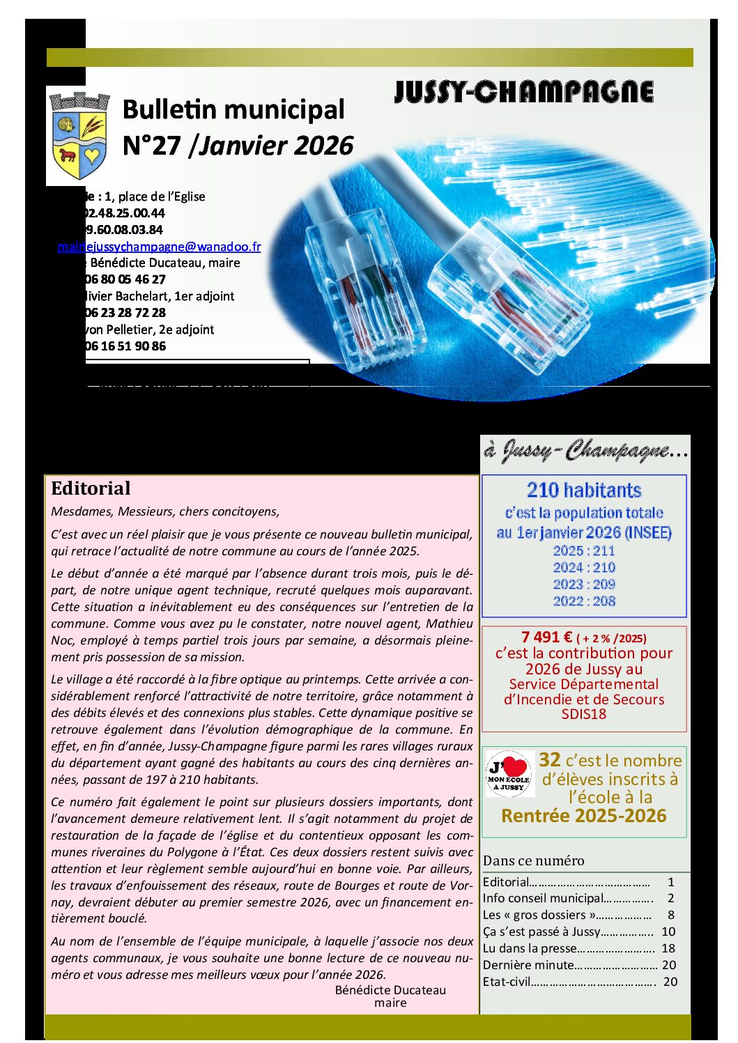 Bulletin n°27 Janvier 2026 Avr 20, 2026 Course cycliste Tour du Cher par Lidwine Friconneau | Avr 20, 2026 | actualités mairie | 0 Commentaires Fibromyalgie par Lidwine Friconneau | Avr 20, 2026 | actualités mairie | 0 Commentaires « Entrées précédentes